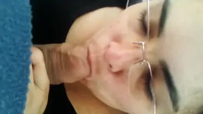 Cute young brunette chick mona lee is standing on her knees and front of her boyfriend and doing